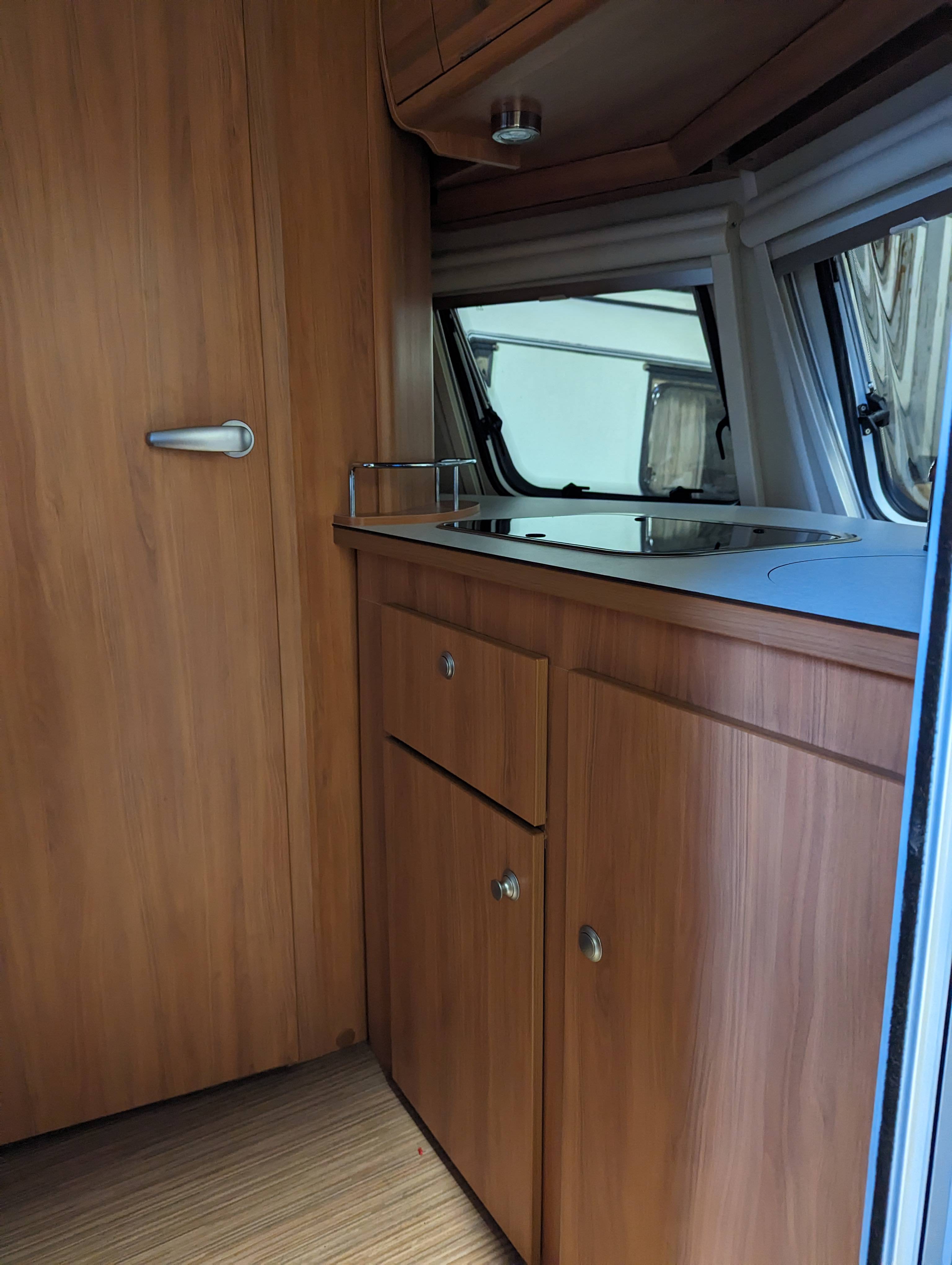 This Eriba’s interior is somewhat bijou, it does offer enough space for two to holiday in comfort, complete with most of the luxuries of home. That means you’ve got cooking and washing facilities. And if you thought you could take those for granted, this is the only Familia 320 that comes with a washroom.