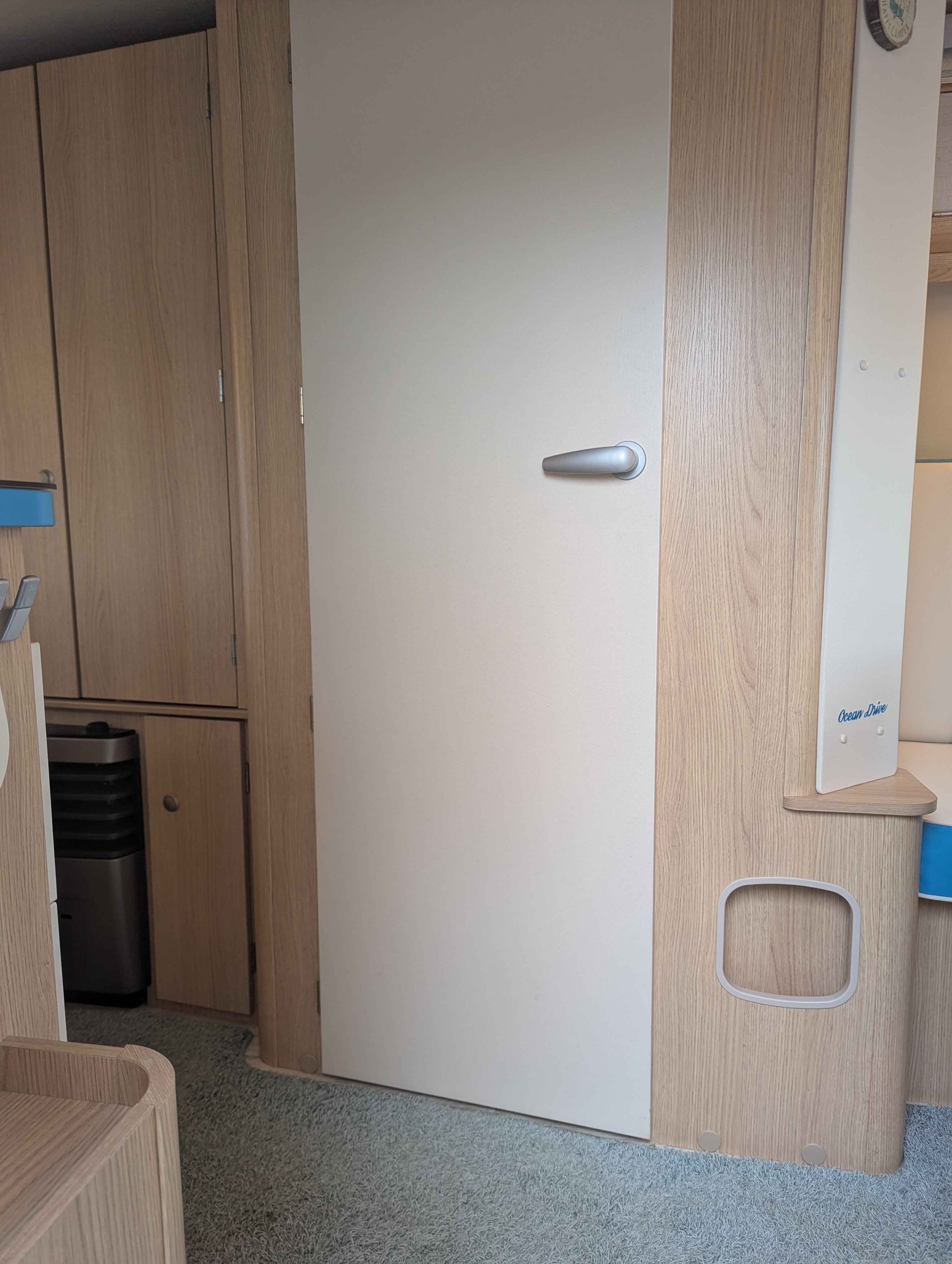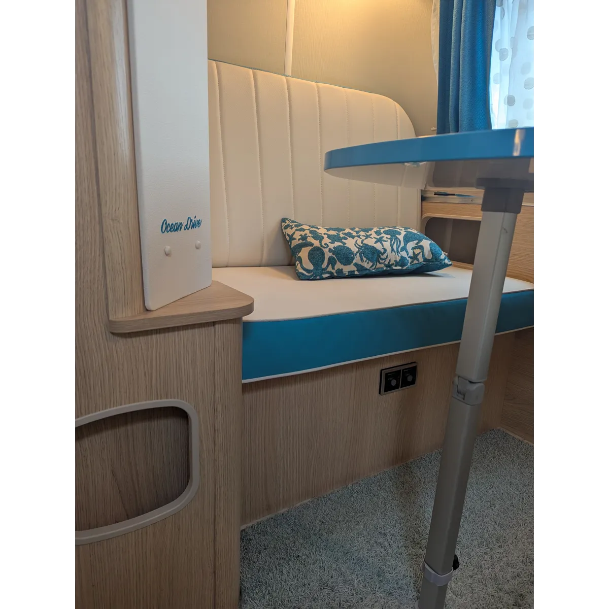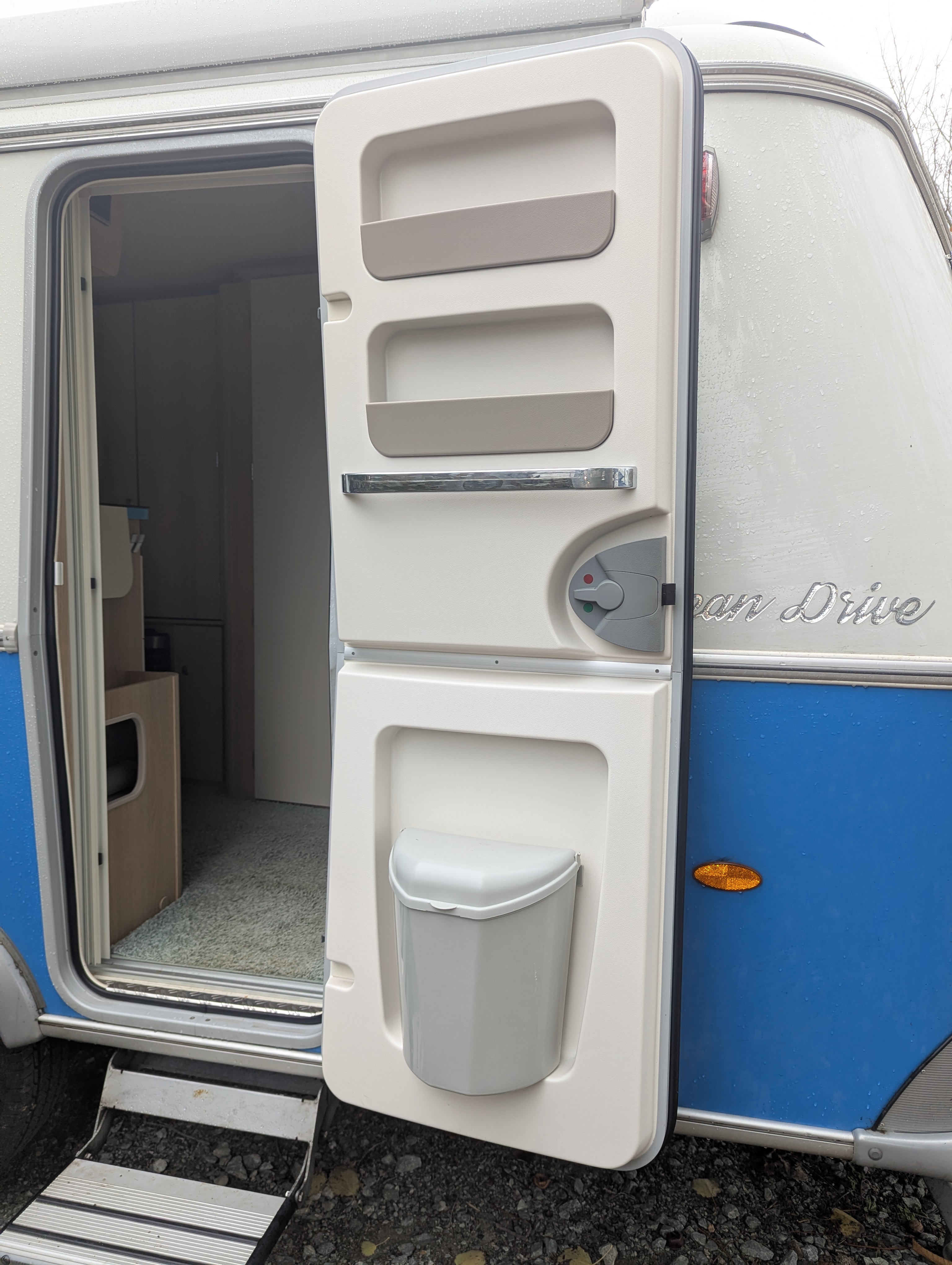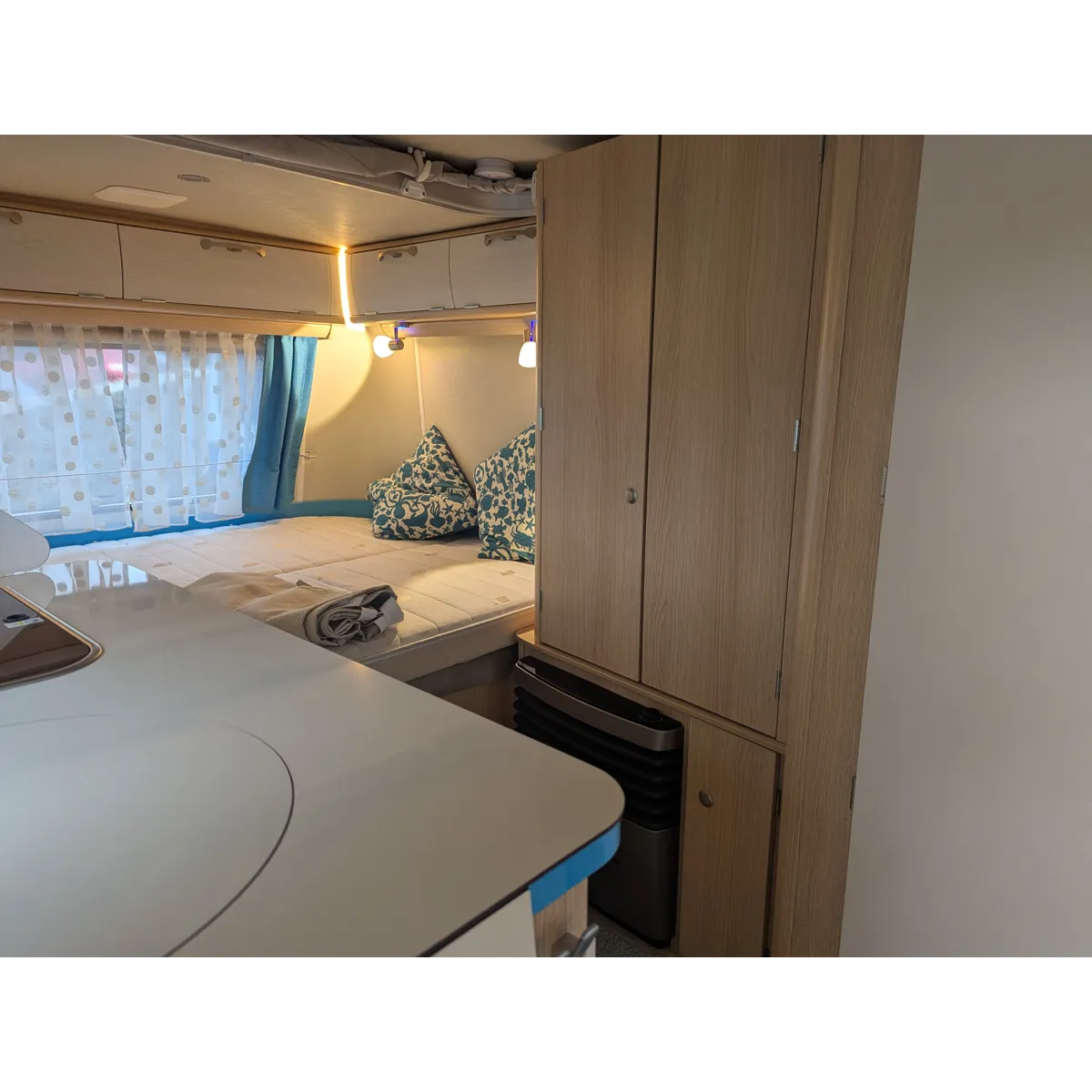Roll-up mosquito screen door, 30L Fresh Water Tank, Exterior Locker Door, Additional reading lights, 2 Utensil Bags, Stone deflector, Loose Fit Carpets, Sink cover & cutting board, Cassette Toilet, Transverse Bed, Fridge